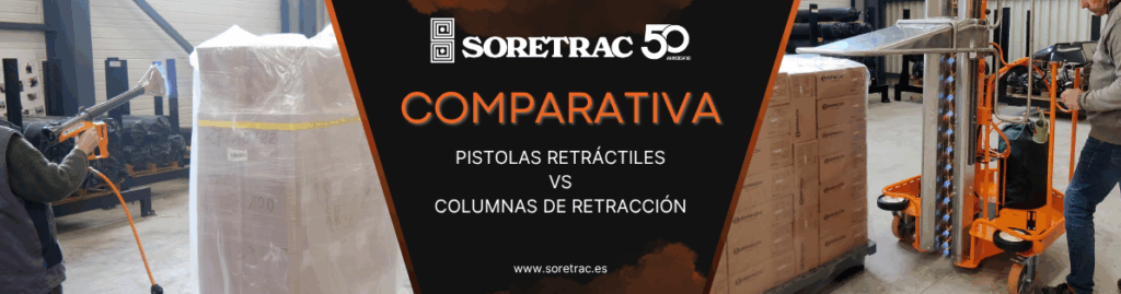 En el mundo del retractilado profesional, existen dos grandes protagonistas: las pistolas retráctiles y las columnas de retracción. Ambas soluciones son ampliamente utilizadas en sectores como la logística, la construcción, la industria pesada o la exportación, pero cada una responde a necesidades muy distintas.